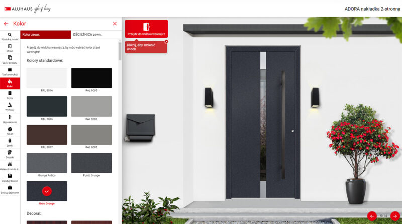 Kolorystyka drzwi również nie pozostaje bez znaczenia. Dzięki technologii Multikolor, modele drzwi mogą być spersonalizowane poprzez umieszczenie dwóch różnych kolorów na jednej płaszczyźnie, a opcja Bikolor pozwala na wykonanie drzwi w różnym kolorze od strony wewnętrznej i zewnętrznej bez dopłaty w obrębie standardowych kolorów.