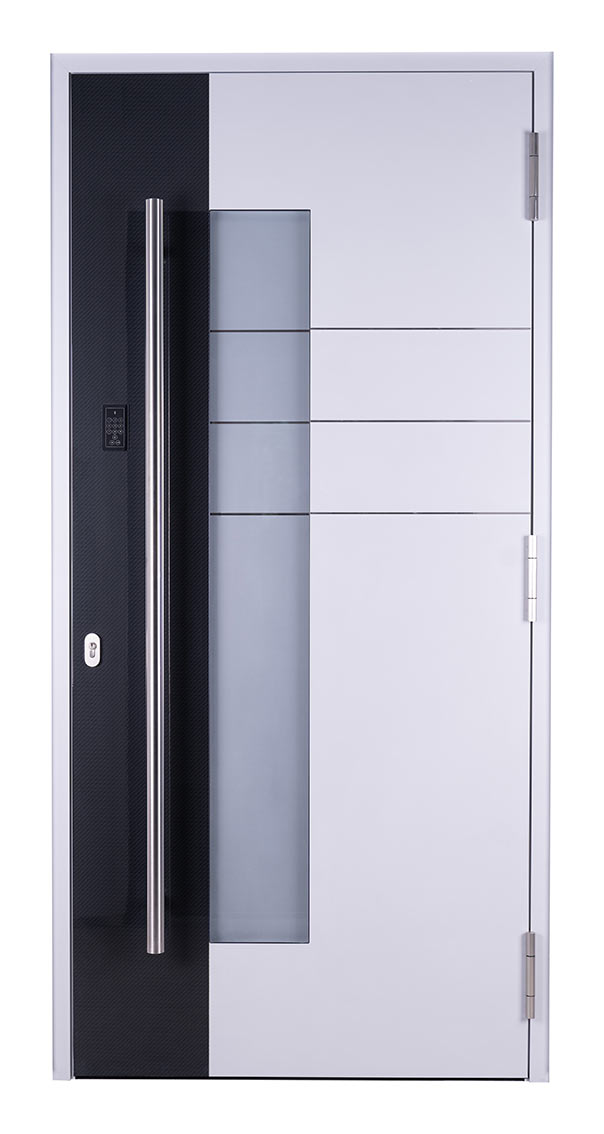 Pamiętaj także o możliwości doboru dodatków ze szkła i aluminium. Stylowy pochwyt ze stali nierdzewnej lub panel ze szkła piaskowanego podniosą prestiż każdych drzwi wejściowych.