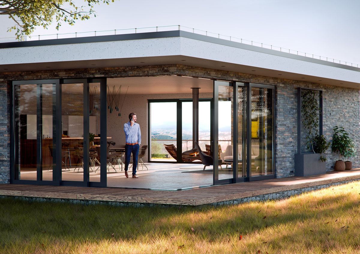Na przykładzie systemów Aluhaus Slide możemy zaobserwować, jak funkcjonują narożne drzwi tarasowe, które mogą osiągać wysokość do 3,2 m i szerokość do 3,3 m i składać się łącznie z czterech segmentów. 3-komorowe kształtowniki wypełnione szkleniem, którego grubość może oscylować w przedziale 13,5–58,5 mm pozwala uzyskać doskonałe parametry izolacji termicznej i akustycznej.