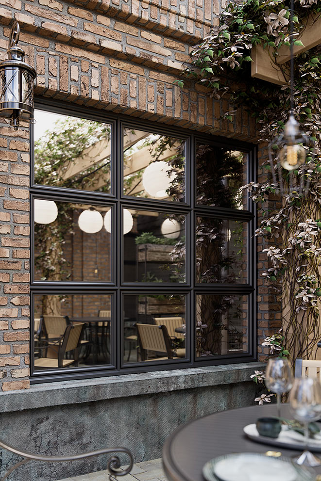 Przykładem systemu okiennego przygotowanego z myślą o architekturze industrialnej, jest system Miru Evo Steel. Profile tej linii świetnie sprawdzą się w nowoczesnej architekturze mieszkalnej, a także starszych budynkach poddawanych renowacji. Wyrazisty „Steel Look” wyraża ostry kształt bryły okna, ukrycie odwodnienia w dole ramy oraz uszczelki zintegrowane z profilem. Za pomocą szprosów możemy jeszcze bardziej podkreślić surowy charakter okna.